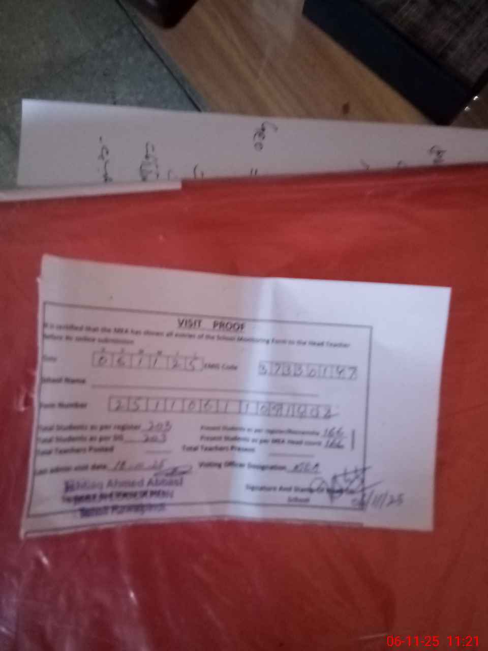 | Attendance Register | Head Teacher | MEA with School | Visit Proof |