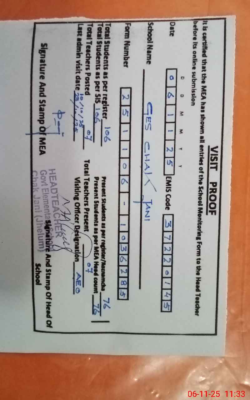 | EMIS Code: 37220145 | Name of School: GES CHAK JANI | |||