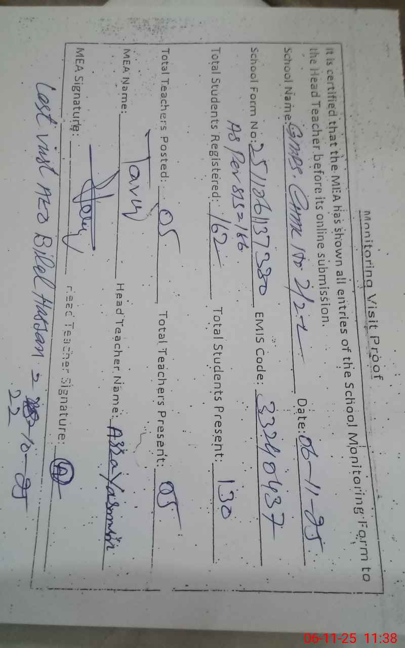 | EMIS Code: 33240437 | Name of School: GMPS CHAK NO. 2/2-L | |||