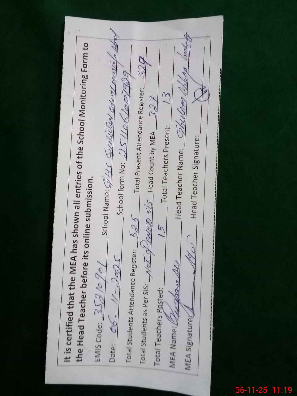| Name: Gh**** Ab**** Designation: (School Headmaster's/Headmistress's) In charge Head Master Phone/Cell Number: 03**** |
