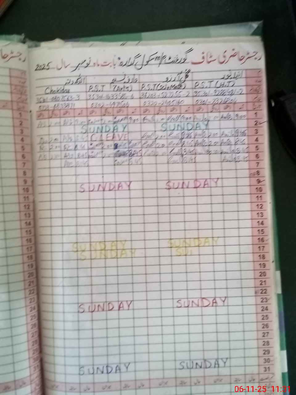| CNIC | Full Name | Designation | R/C | Absence During Last Calender Month |