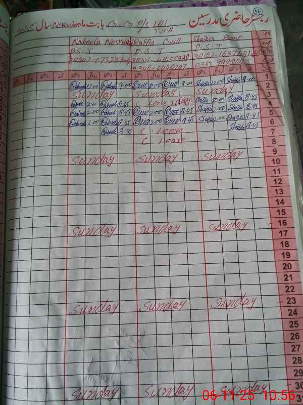 | Name: Sh**** Ba**** Designation: (School Headmaster's/Headmistress's) PST Phone/Cell Number: 03**** |