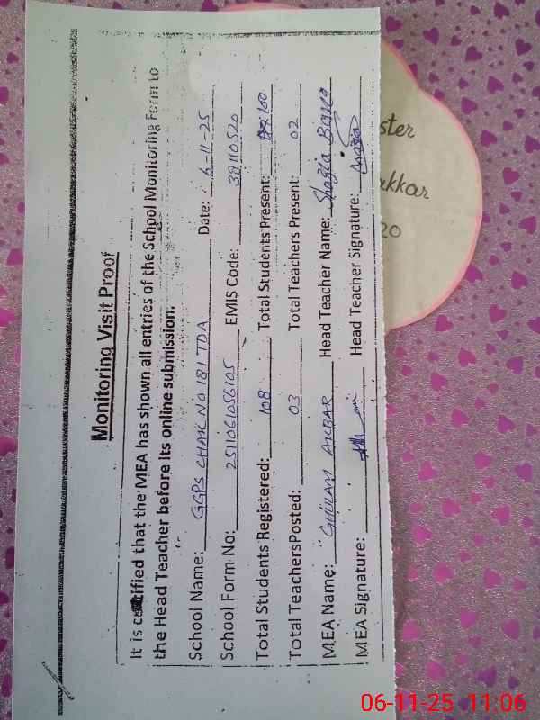 | Attendance Register | Head Teacher | MEA with School | Visit Proof |