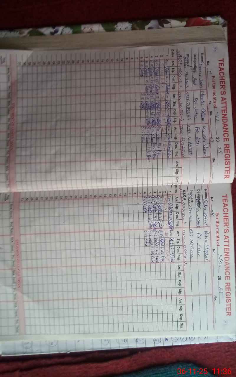 | CNIC | Full Name | Designation | R/C | Absence During Last Calender Month |
