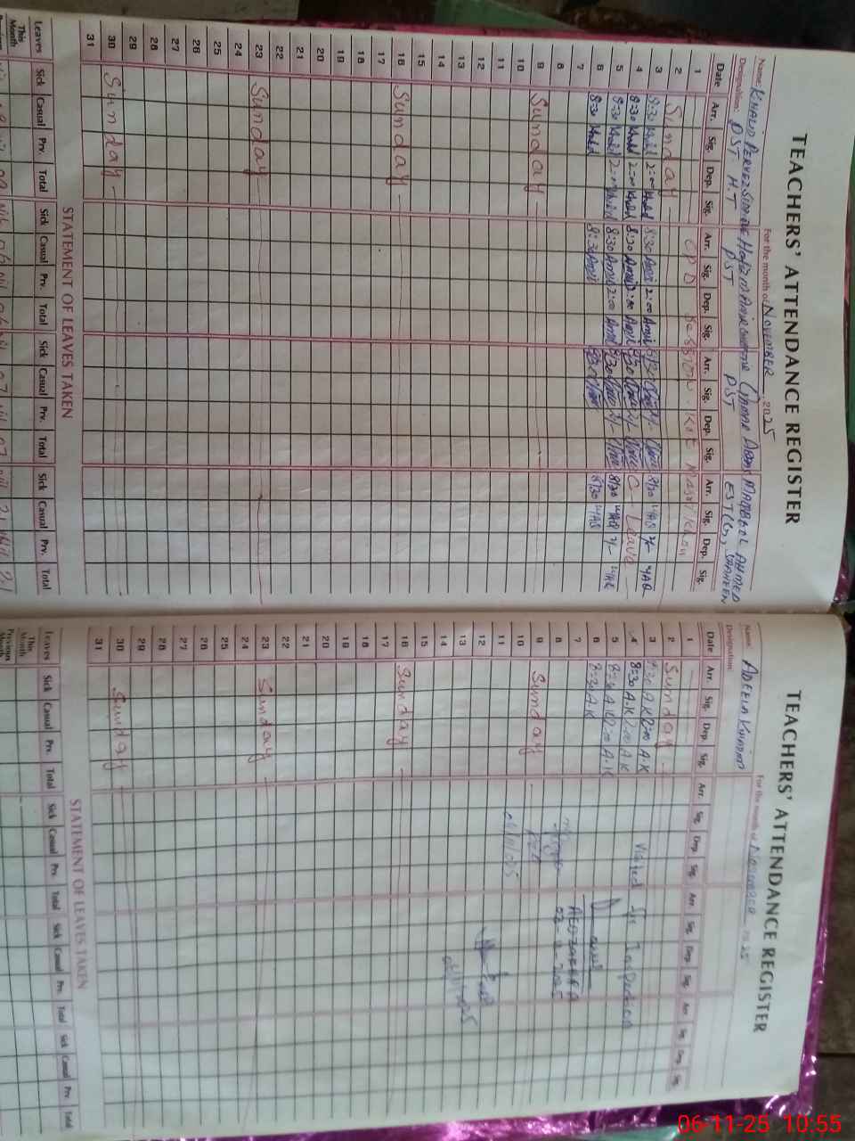 | CNIC | Full Name | Designation | R/C | Absence During Last Calender Month |