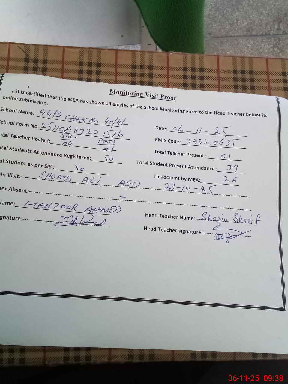 | EMIS Code: 39320635 | Name of School: GGPS CHAK NO. 40/4-L | |||