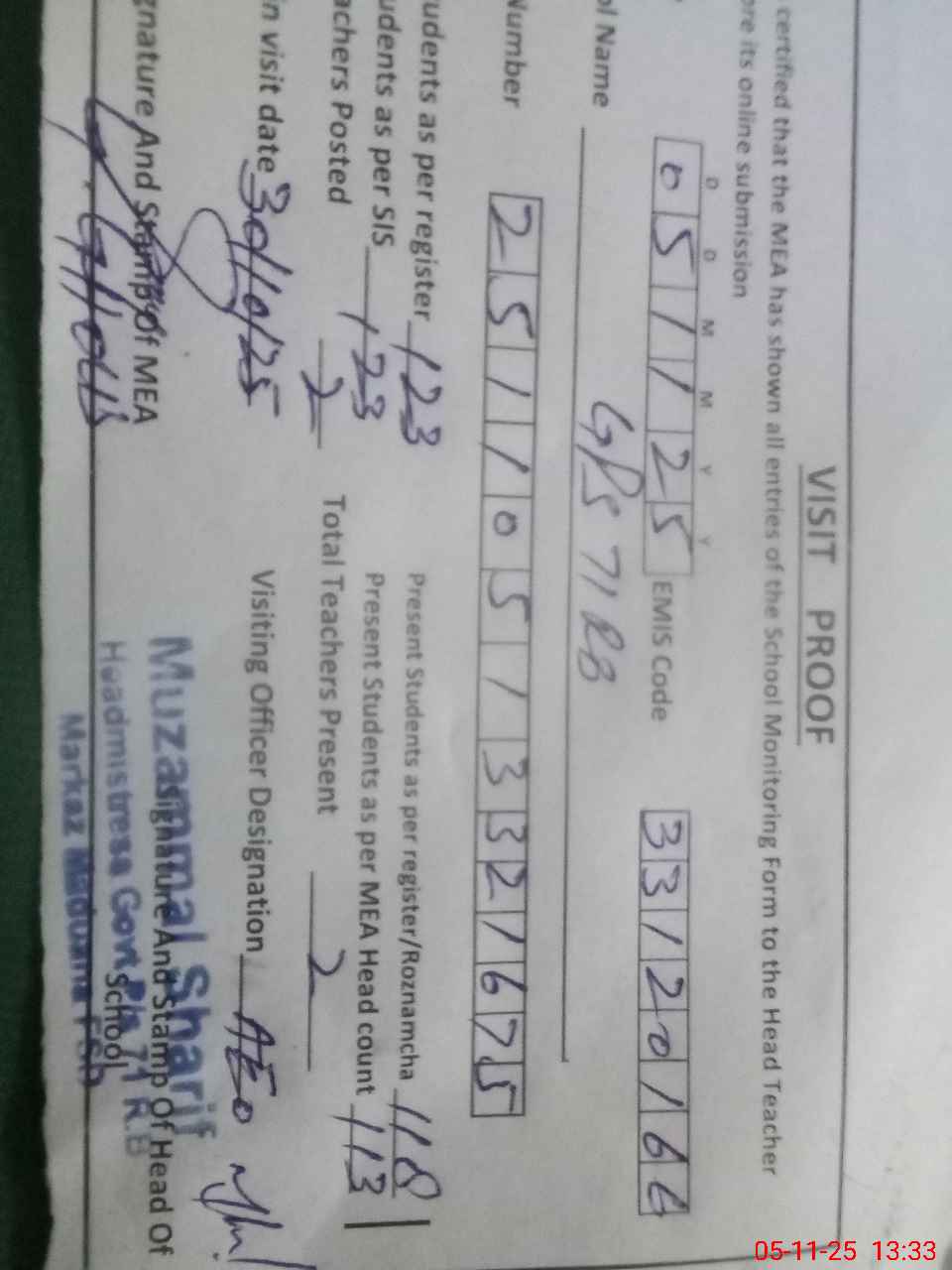 | EMIS Code: 33120166 | Name of School: GPS CHAK NO 71 RB | |||