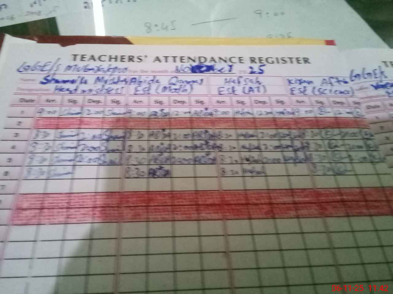 | Attendance Register | Head Teacher | MEA with School | Visit Proof |