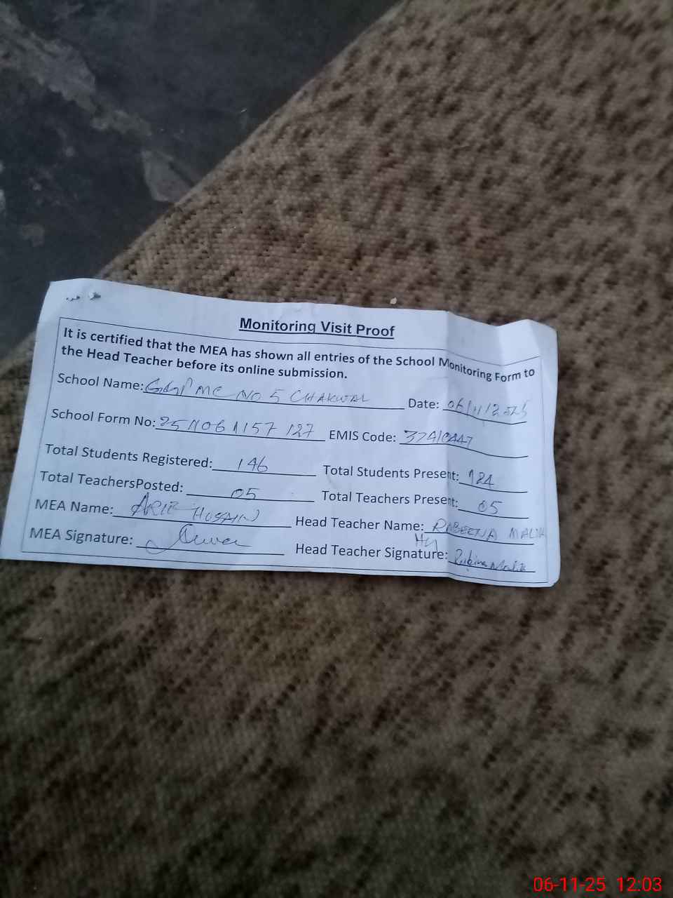 | EMIS Code: 37410447 | Name of School: GGPS MC NO.5 CHAKWAL | |||