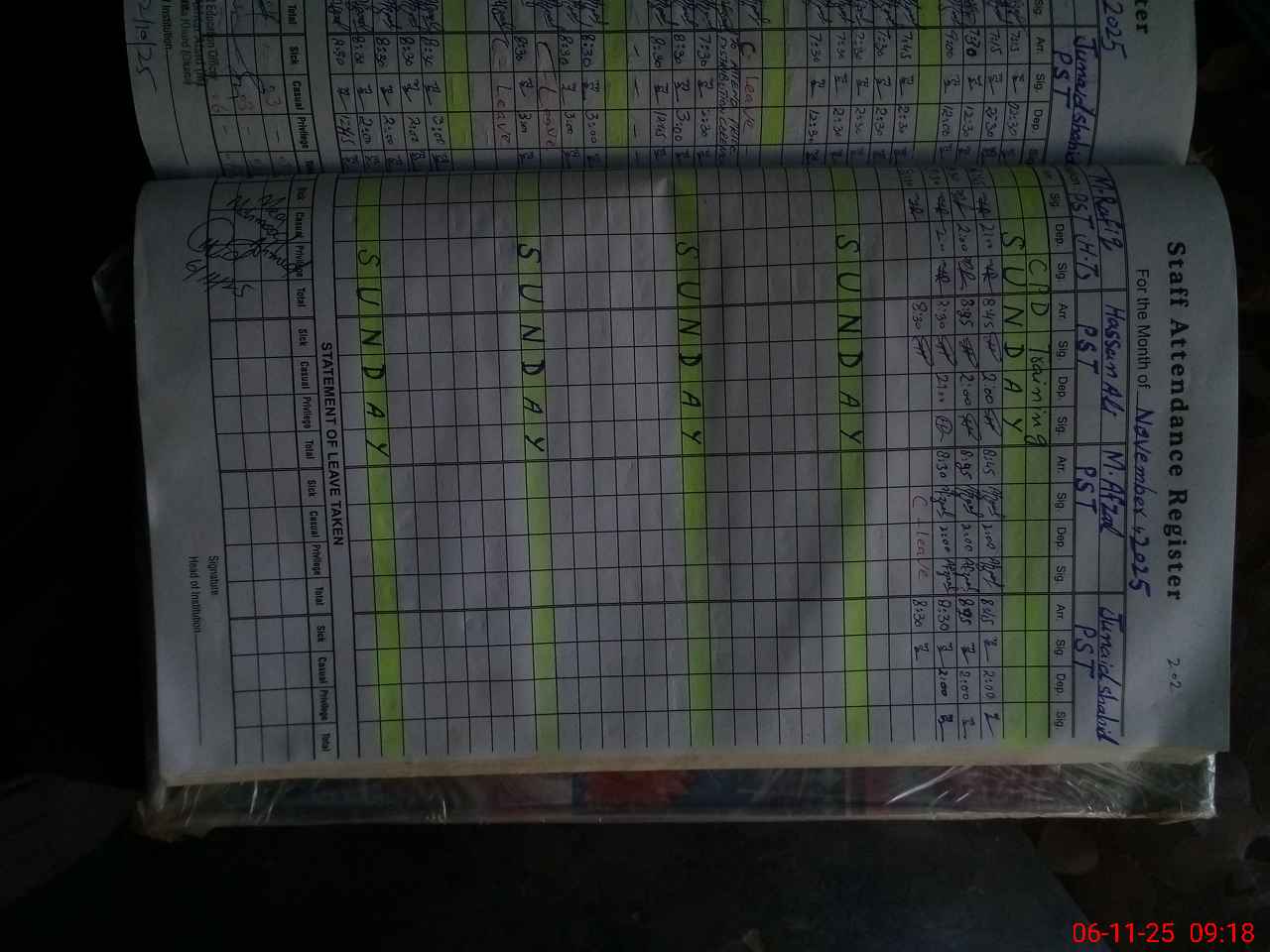 | CNIC | Full Name | Designation | R/C | Absence During Last Calender Month |