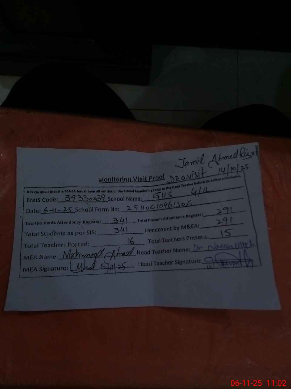 | Certified that this School was Inspected by the Undersigned MEA/DMO Today and the Information Stated Above is as Per Record. | |||||
