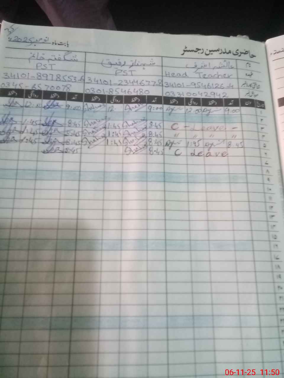 | Name: AI**** AS**** Designation: (School Headmaster's/Headmistress's) PST Phone/Cell Number: 03**** |