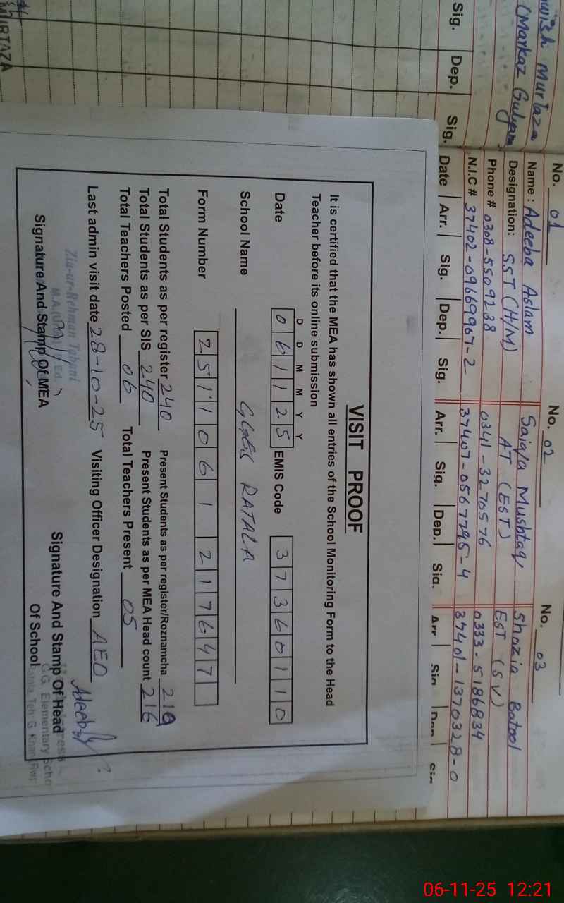 | EMIS Code: 37360110 | Name of School: GGES RATALA | |||