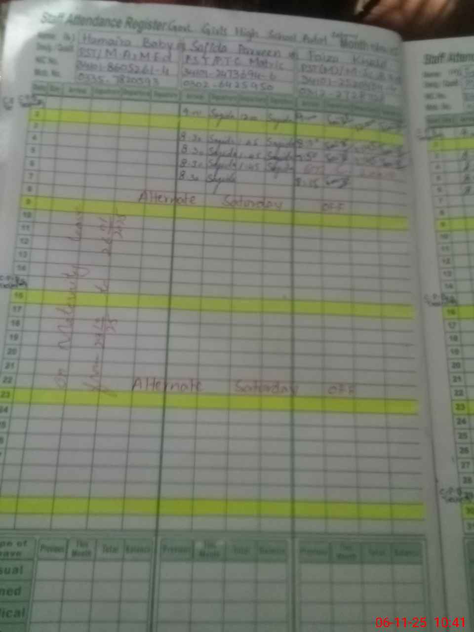 | Name: IQ**** SA**** Designation: (School Headmaster's/Headmistress's) Headmistress (OPS) Phone/Cell Number: 03**** |