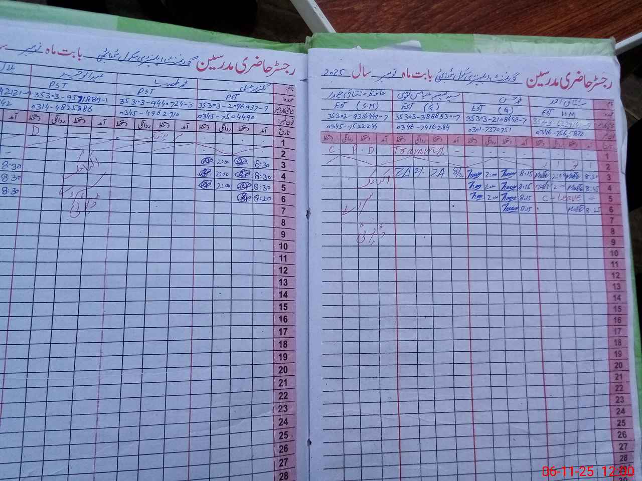 | CNIC | Full Name | Designation | R/C | Absence During Last Calender Month |