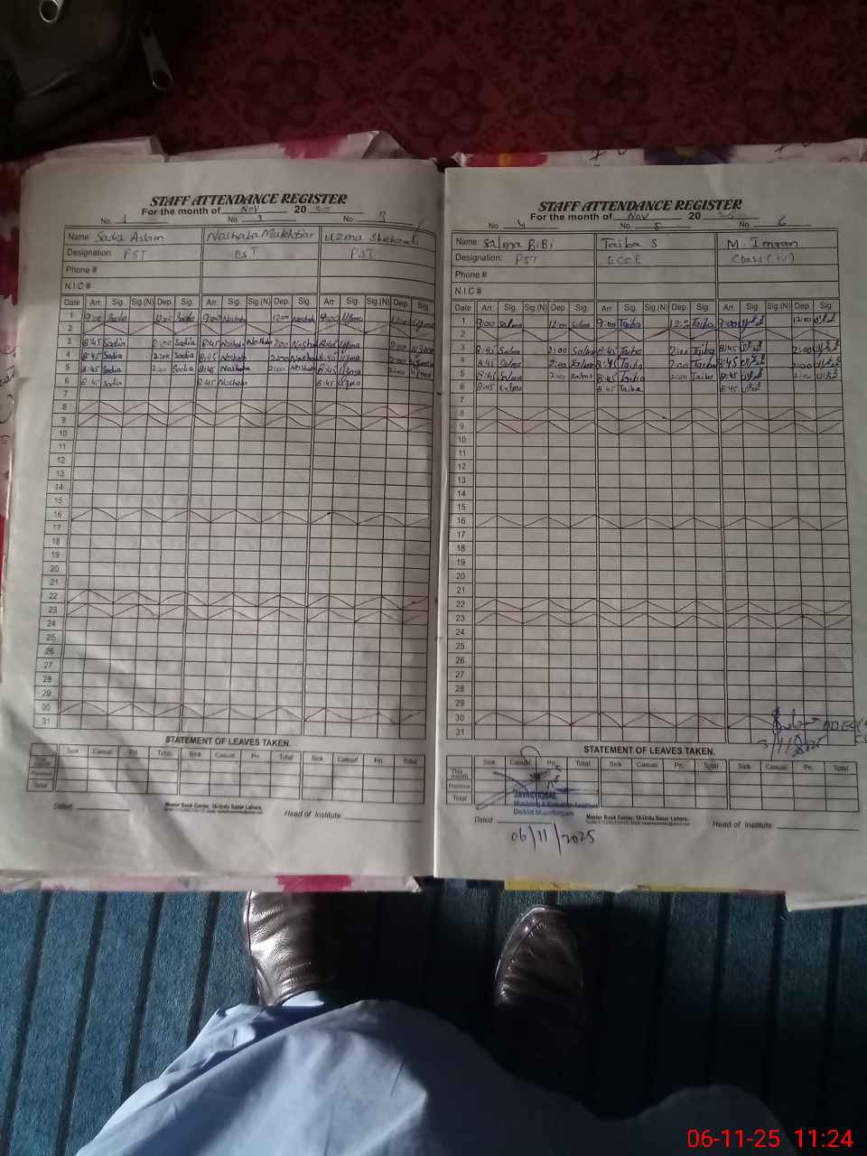 | CNIC | Full Name | Designation | R/C | Absence During Last Calender Month |