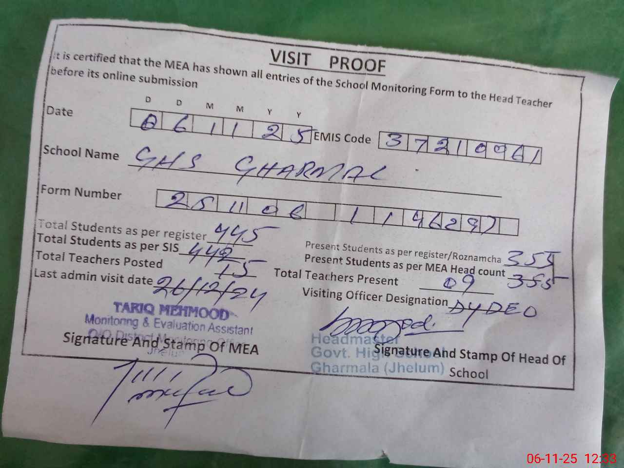 | EMIS Code: 37210061 | Name of School: GHS GHARMALA | |||