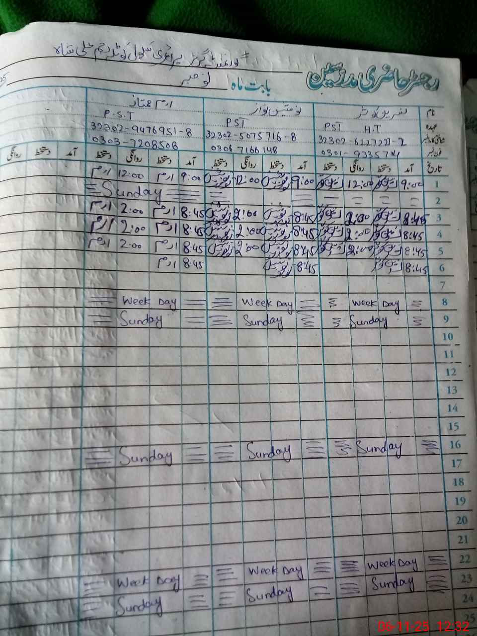 | Name: Na**** Ka**** Designation: (School Headmaster's/Headmistress's) PST Phone/Cell Number: 03**** |