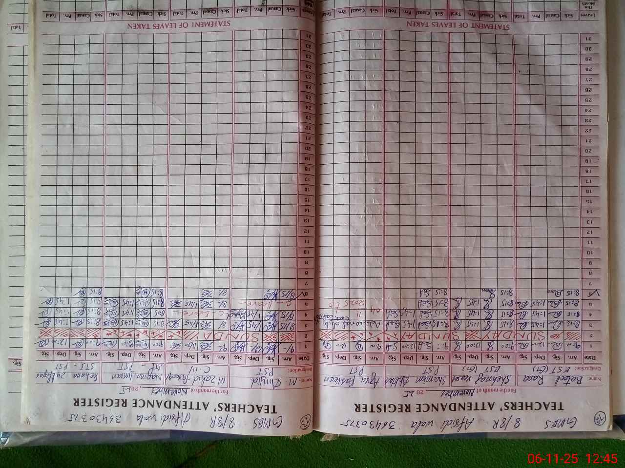 | CNIC | Full Name | Designation | R/C | Absence During Last Calender Month |