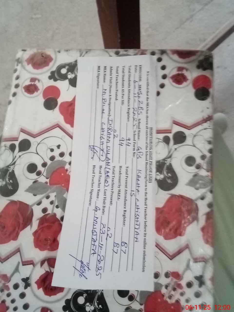 | EMIS Code: 38450285 | Name of School: GPS KACHA CHISHTIAN | |||
