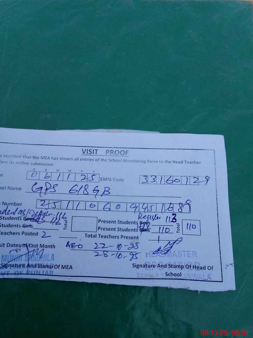 | EMIS Code: 33160129 | Name of School: GPS CHAK 618 GB KHAN GARH TANDLIANWALA | |||