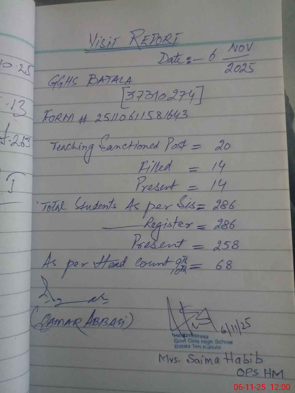 | EMIS Code: 37310274 | Name of School: GGHS BATALA | |||