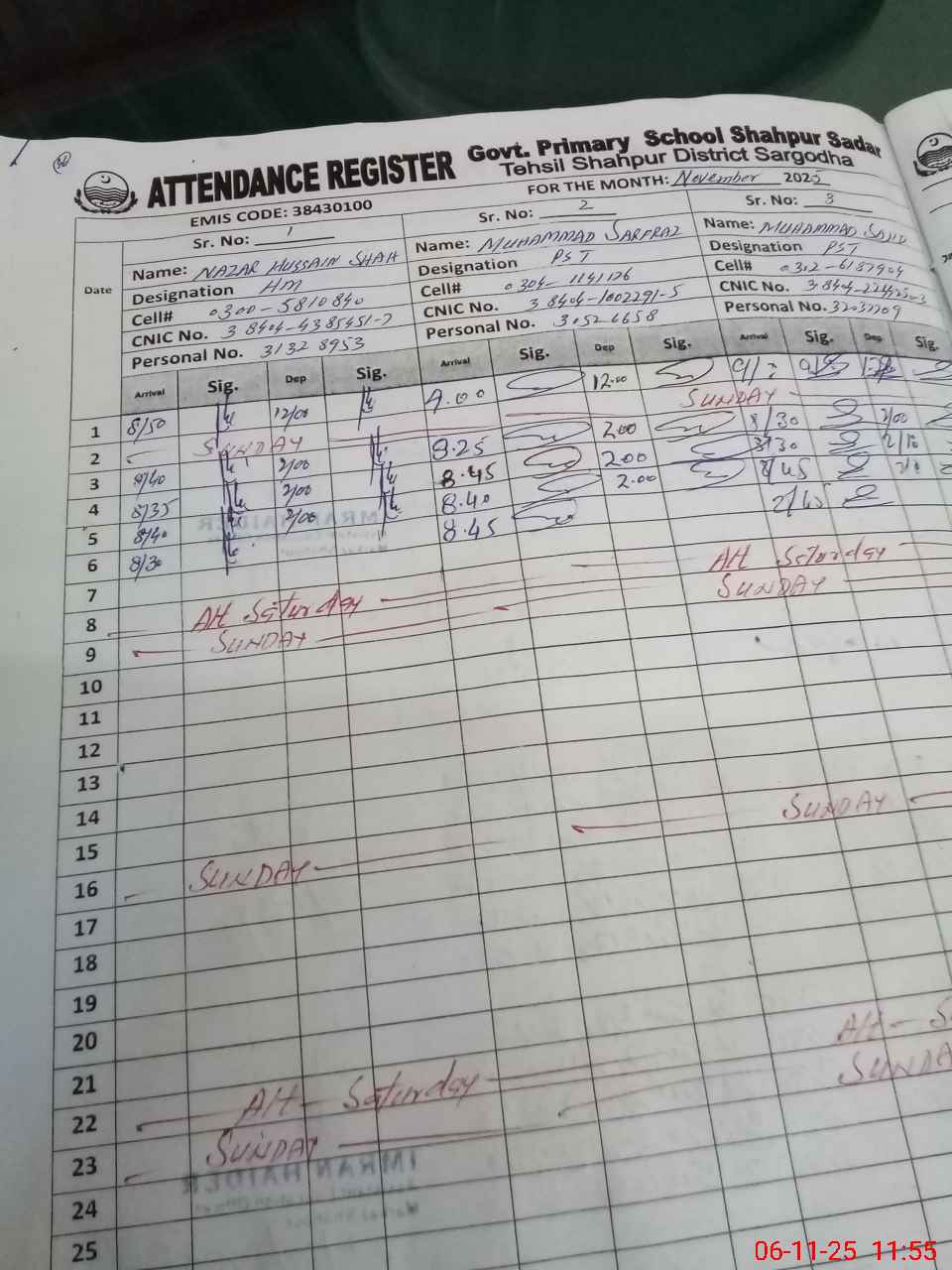 | Name: NA**** HU**** SH**** Designation: (School Headmaster's/Headmistress's) PST Phone/Cell Number: 03**** |