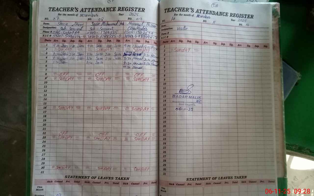 | 38**** | Kh**** Gh**** | Regular | 0 | 4 | 0 | 0 | 0 | 0 | 0 | 0 | 0 | Exam Duty | |