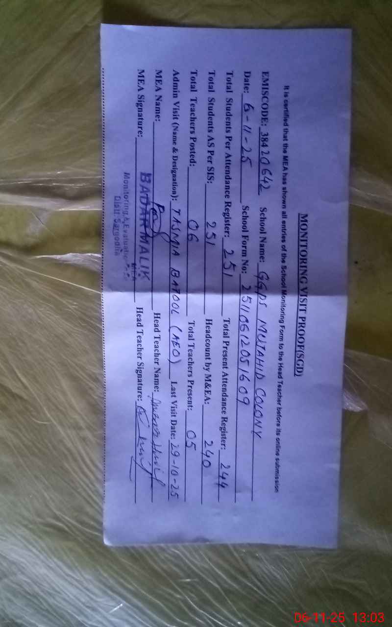 | EMIS Code: 38420642 | Name of School: GGPS MUJAHID COLONY | |||
