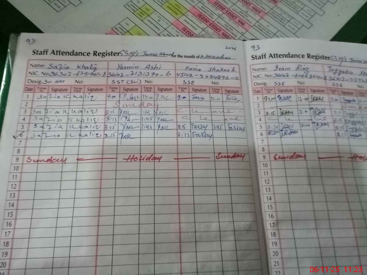 | CNIC | Full Name | Designation | R/C | Absence During Last Calender Month |