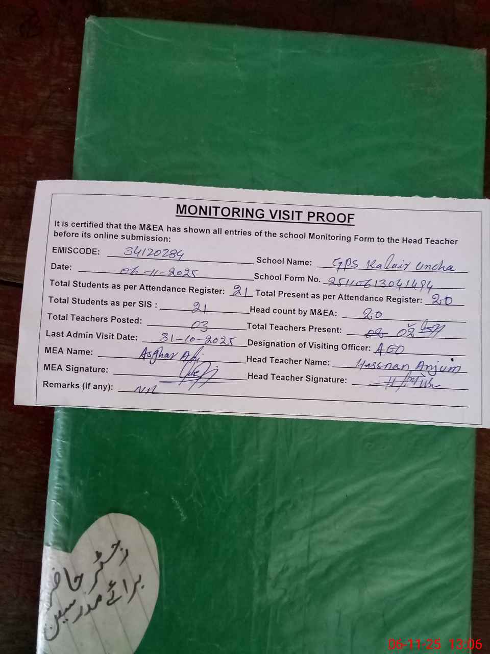 | EMIS Code: 34120284 | Name of School: GPS KALAIR UNCHA | |||