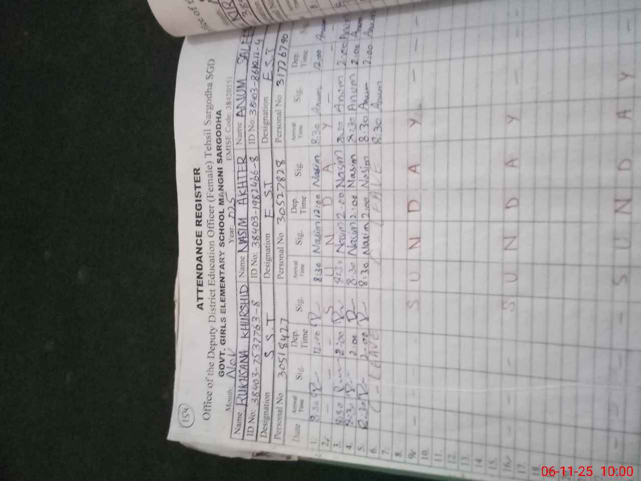 | Name: RU**** KH**** Designation: (School Headmaster's/Headmistress's) SST(ARTS) Phone/Cell Number: 03**** |