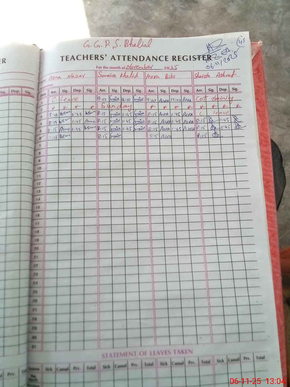 | Leave | Duty | Absent | Maternity | Medical | Ex- Pak |
