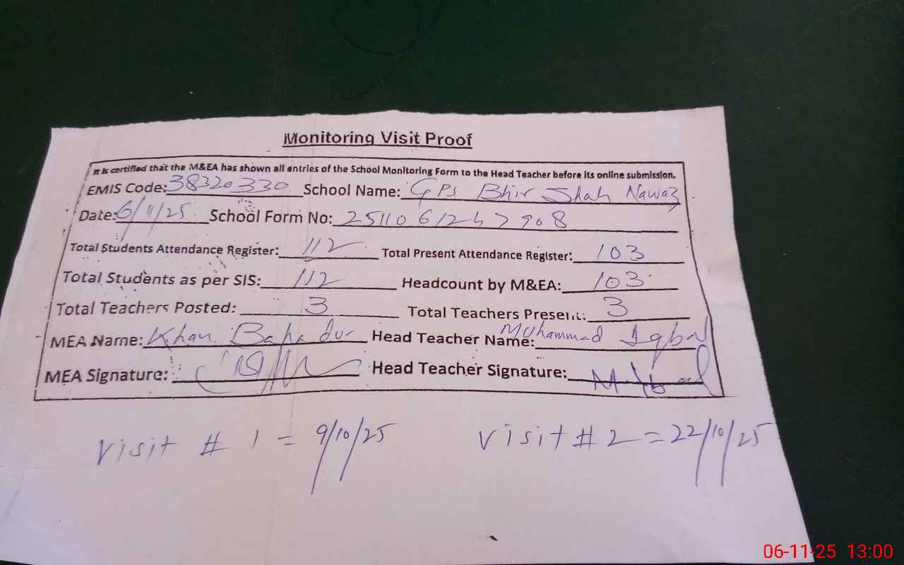 | EMIS Code: 38320330 | Name of School: GPS BHIR SHAH NAWAZ WALA | |||