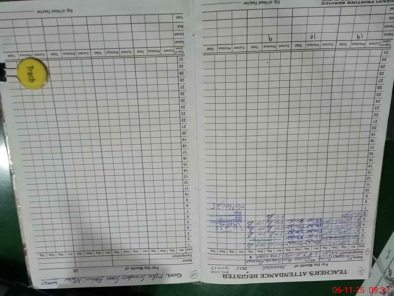 | Attendance Register | Head Teacher | MEA with School | Visit Proof |