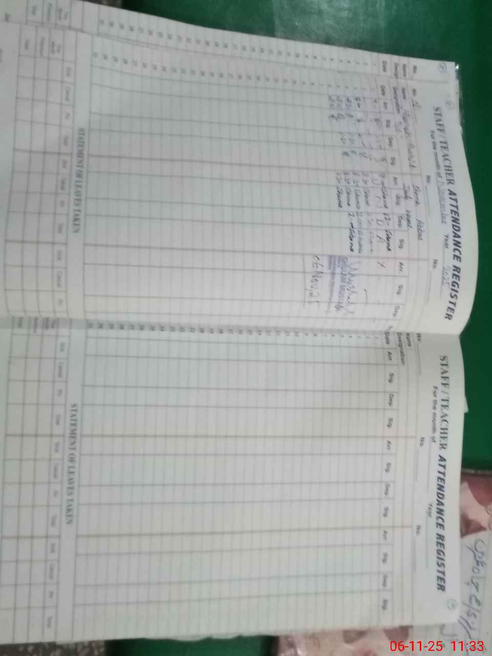 | CNIC | Full Name | Designation | R/C | Absence During Last Calender Month |