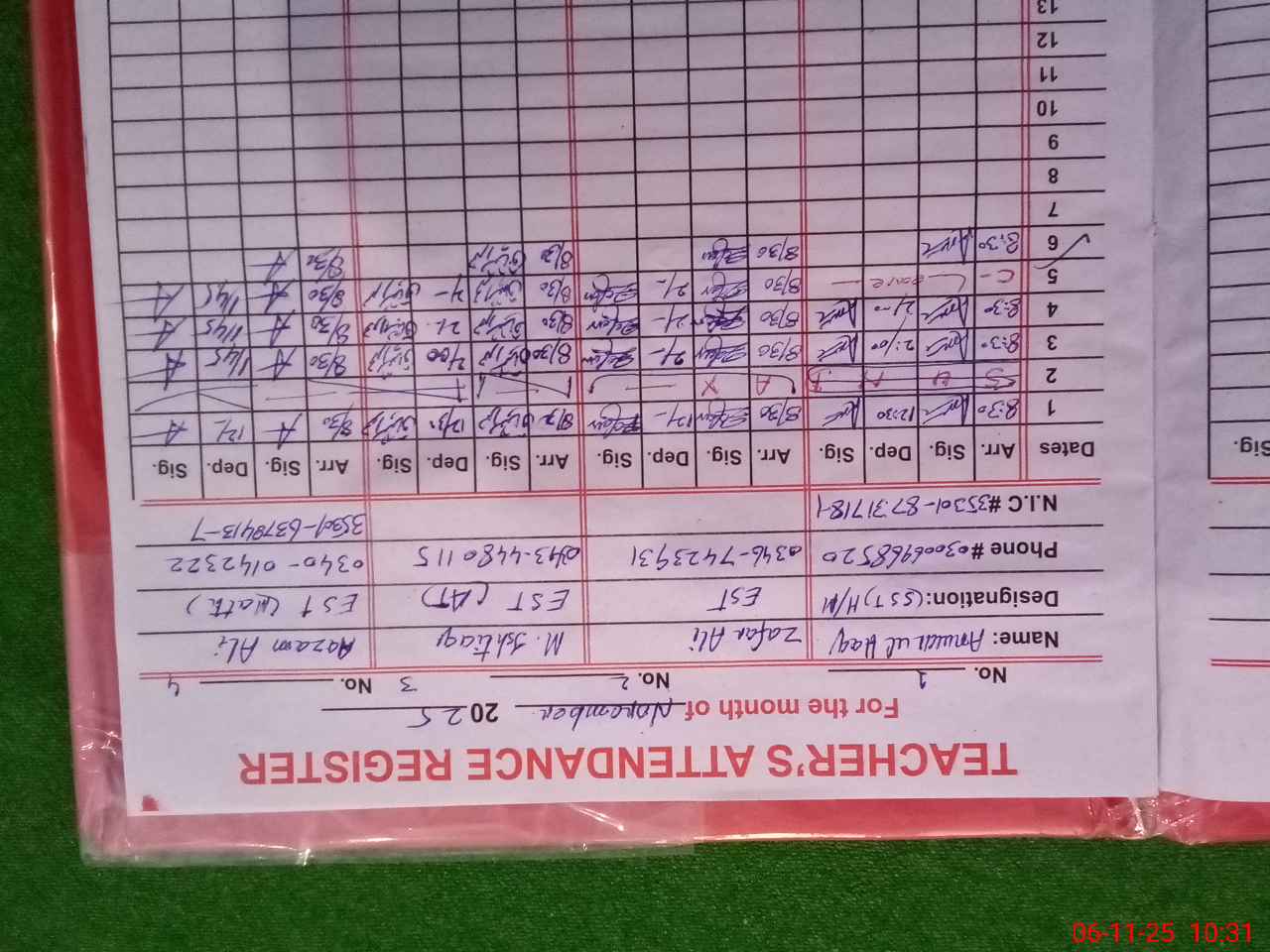 | Name: AN**** UIHA**** Designation: (School Headmaster's/Headmistress's) S.S.T.(Arts) Phone/Cell Number: 03**** |