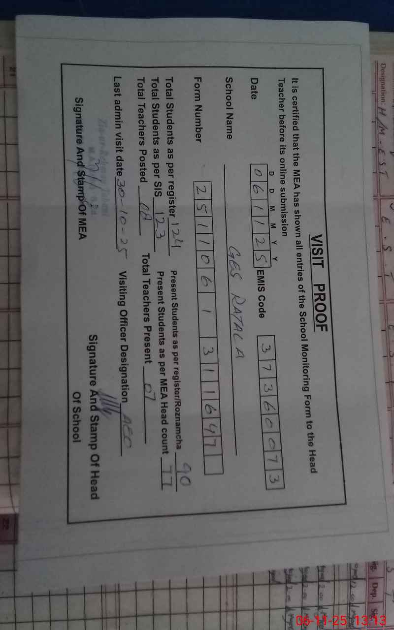 | Attendance Register | Head Teacher | MEA with School | Visit Proof |