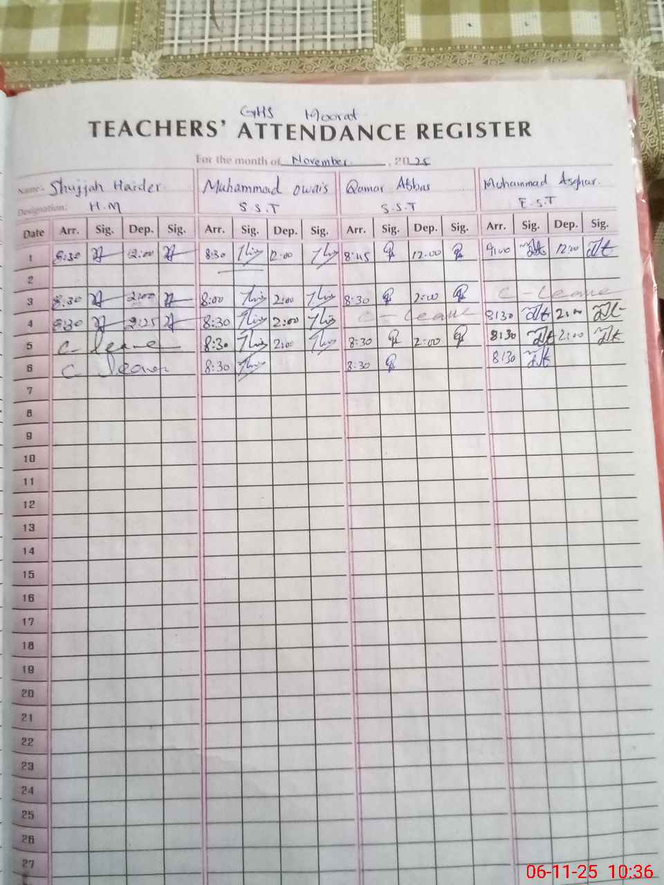 | Remarks (Use Separate Page if Required): Nsb cash book under locked so data was not entered Clerk attendance was on register but he was not in school He came after 15 mints passed my visit as per head teacher he was gone for school council meeting issuebut he did not signed movement register | |||||