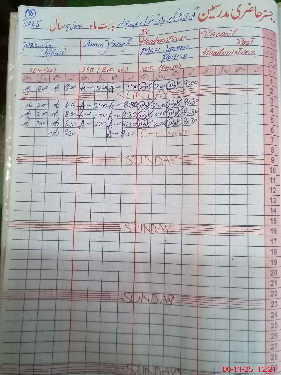 | Name: Ma**** Fa**** Designation: (School Headmaster's/Headmistress's) S.S.T.(Science ) Phone/Cell Number: 03**** |