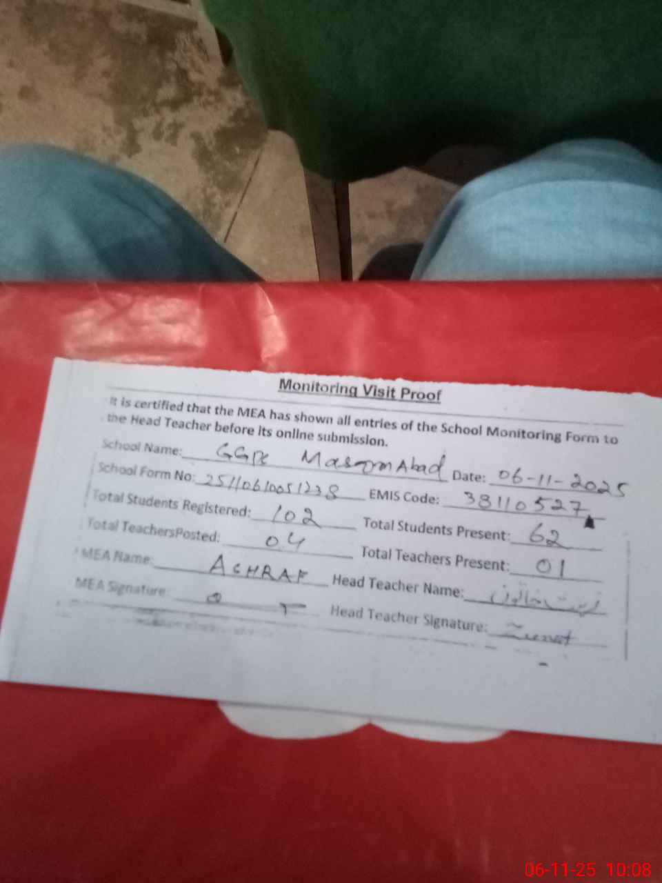 | EMIS Code: 38110527 | Name of School: GGPS MASOOM ABAD | |||