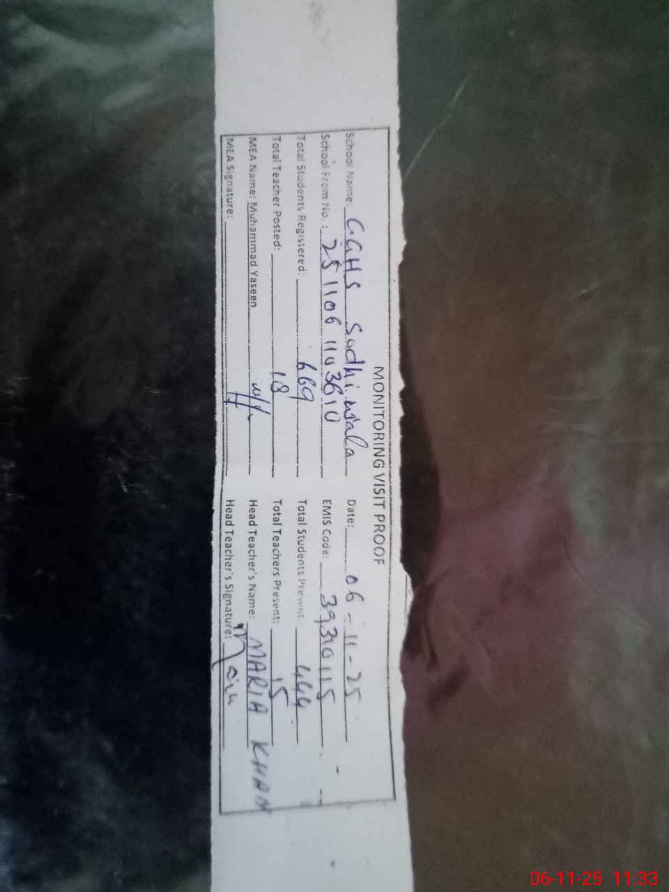 | EMIS Code: 39310115 | Name of School: GGHS SODHIWAL | |||
