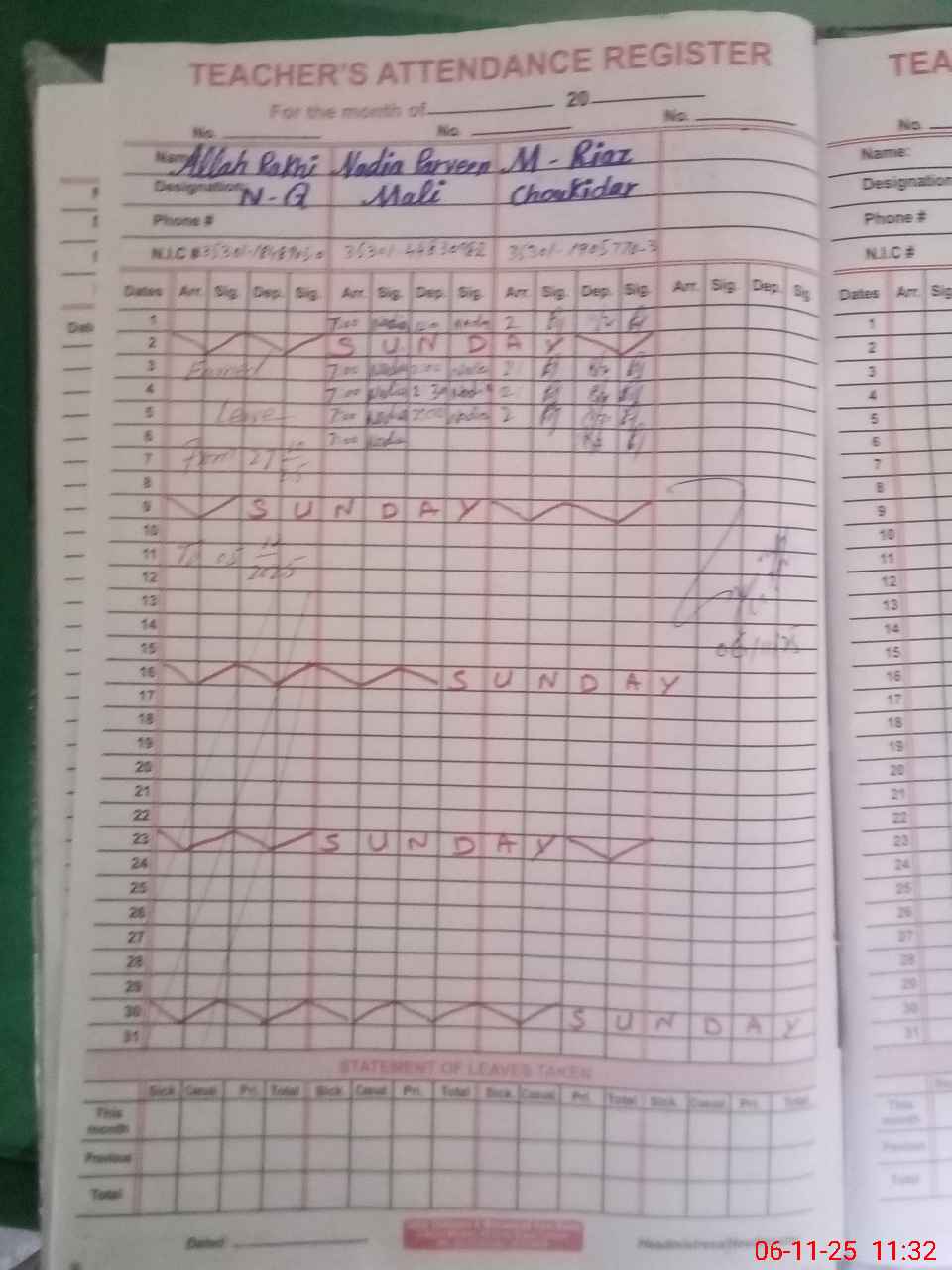 | Name: Za**** unNi**** Designation: (School Headmaster's/Headmistress's) HEADMISTRESS Phone/Cell Number: 03**** |