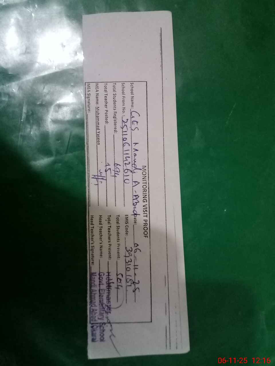 | EMIS Code: 39310181 | Name of School: GES MANDI AHMAD ABAD | |||