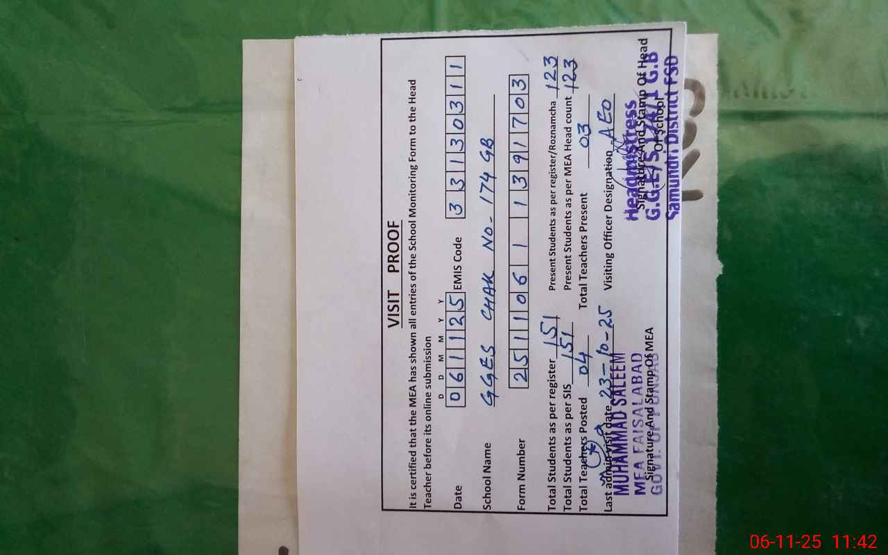 | EMIS Code: 33130311 | Name of School: GGES CHAK NO. 174 GB I | |||