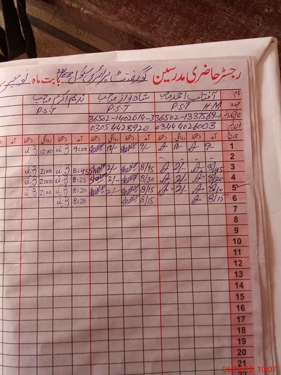 | Name: AF**** AH**** Designation: (School Headmaster's/Headmistress's) PST Phone/Cell Number: 03**** |