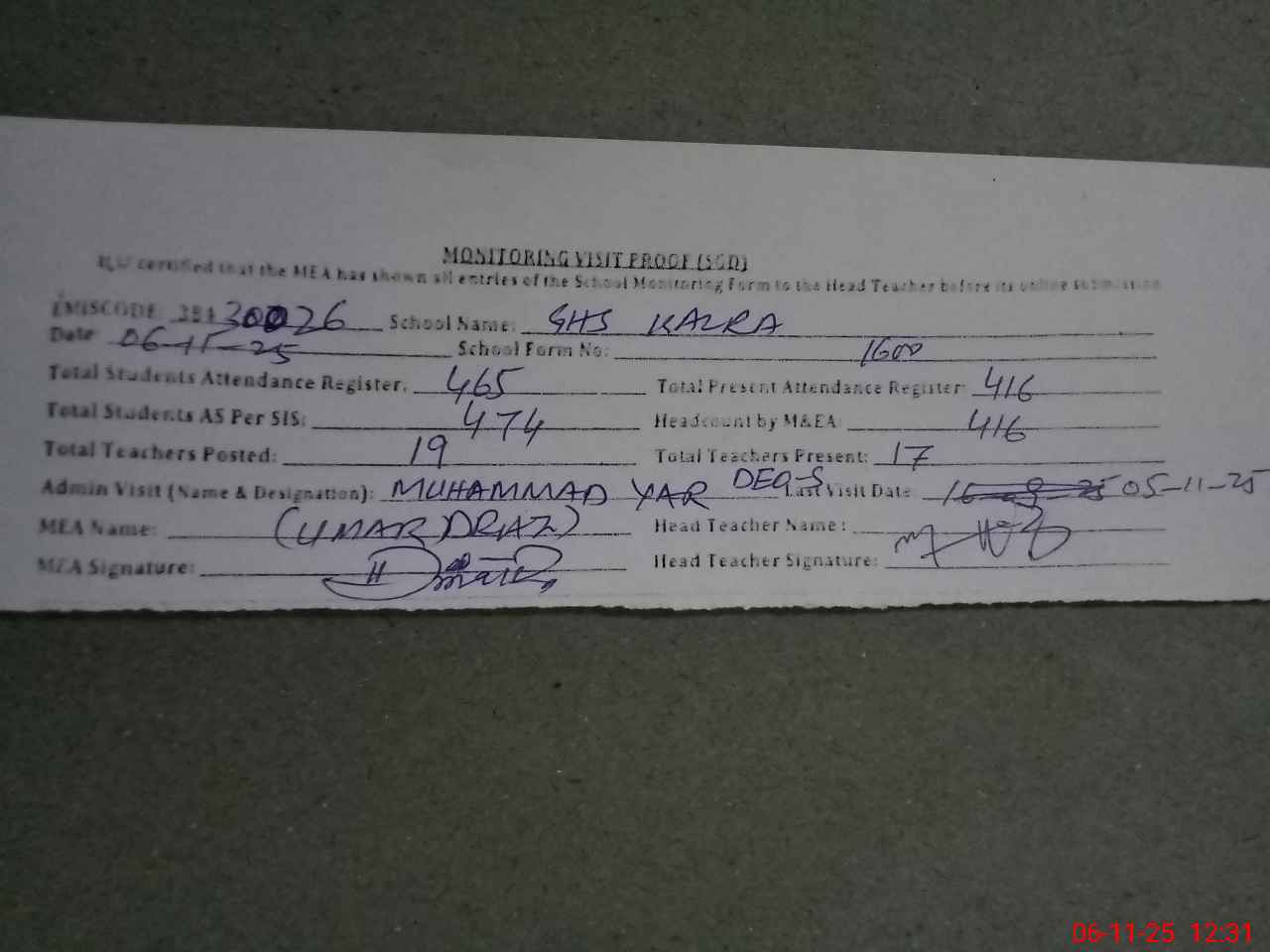 | EMIS Code: 38430026 | Name of School: GHS KALRA SHAHPUR | |||