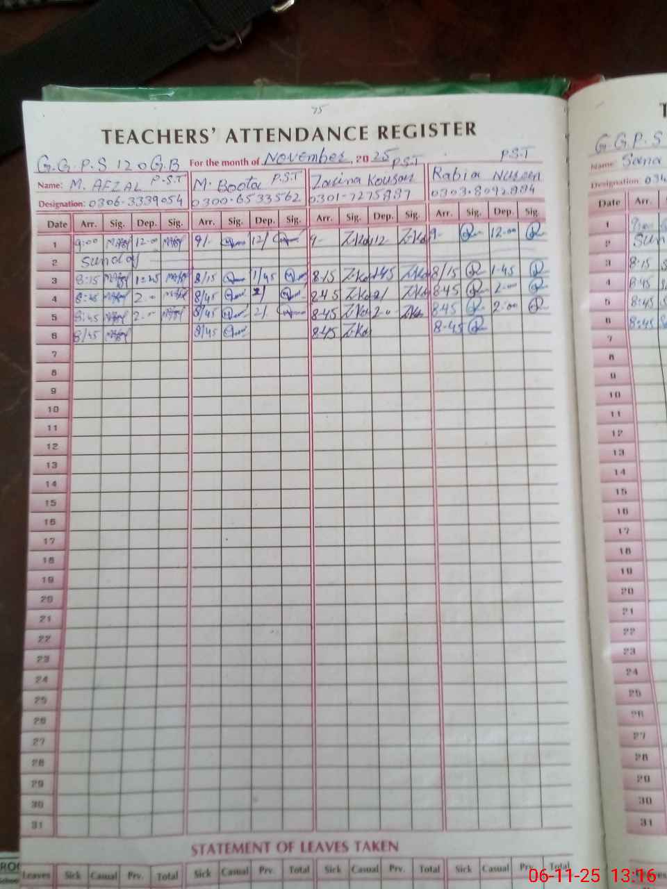 | Name: MU**** AF**** Designation: (School Headmaster's/Headmistress's) PST Phone/Cell Number: 03**** |