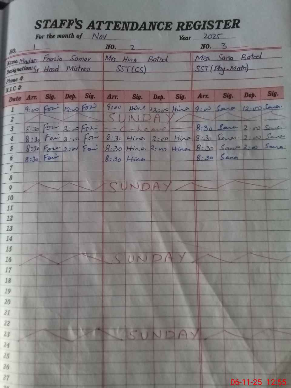 | Name: Fo**** Su**** Designation: (School Headmaster's/Headmistress's) Senior Head Mistress Phone/Cell Number: 03**** |