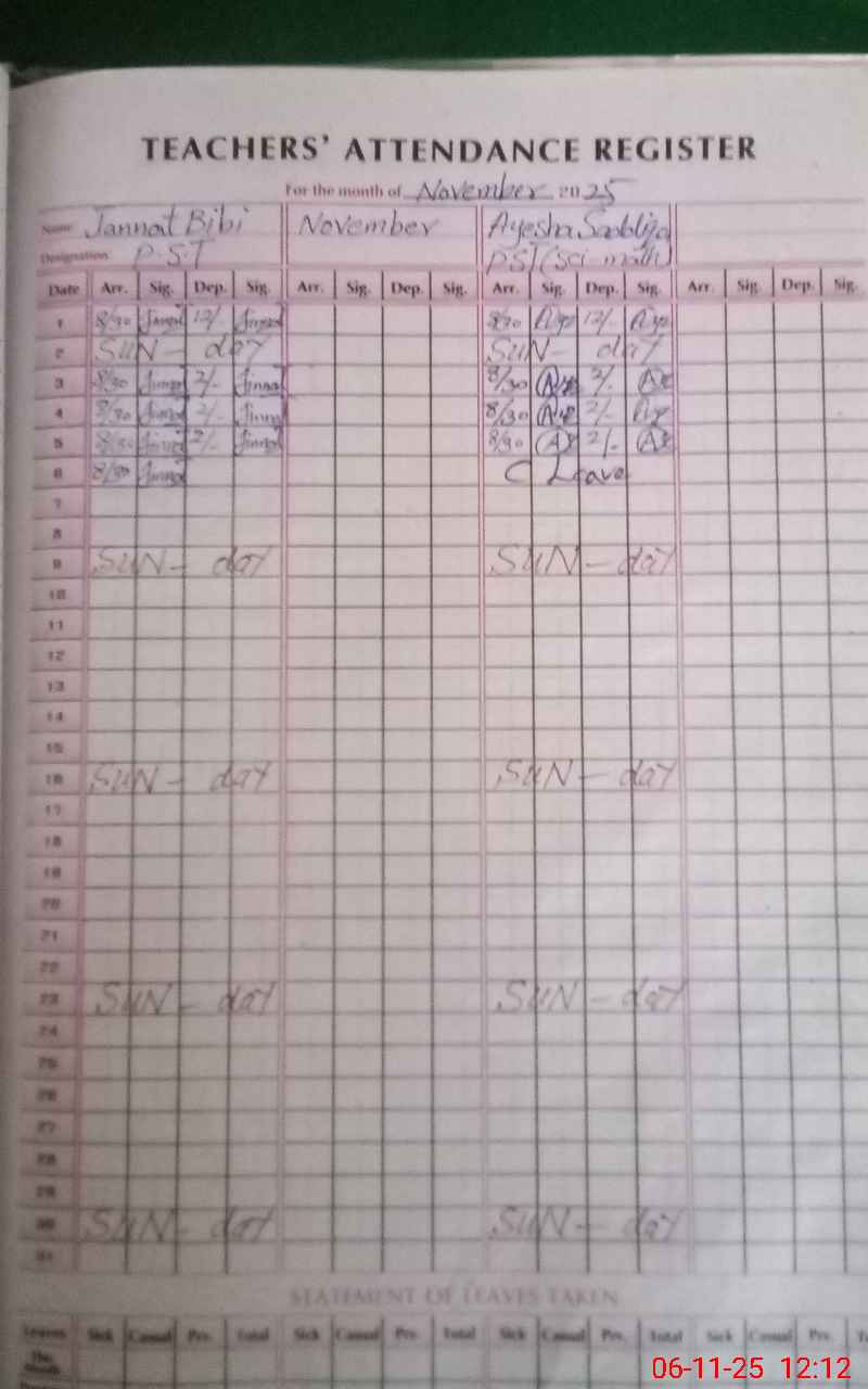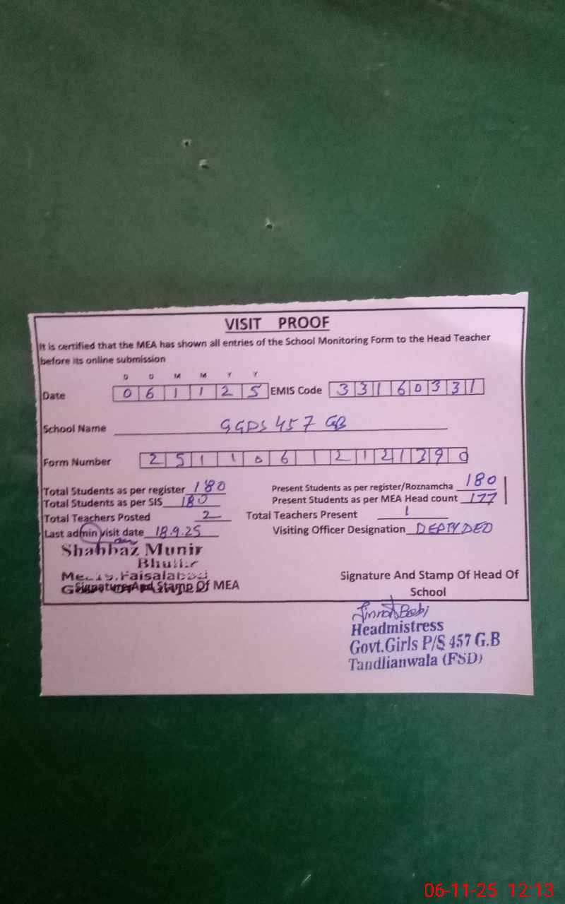 | Attendance Register | Head Teacher | MEA with School | Visit Proof |